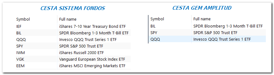 El sistema fondos tiene el mismo código y parámetros que el sistema GEM Amplitud, la única diferencia radica en la cesta de activos que operan: