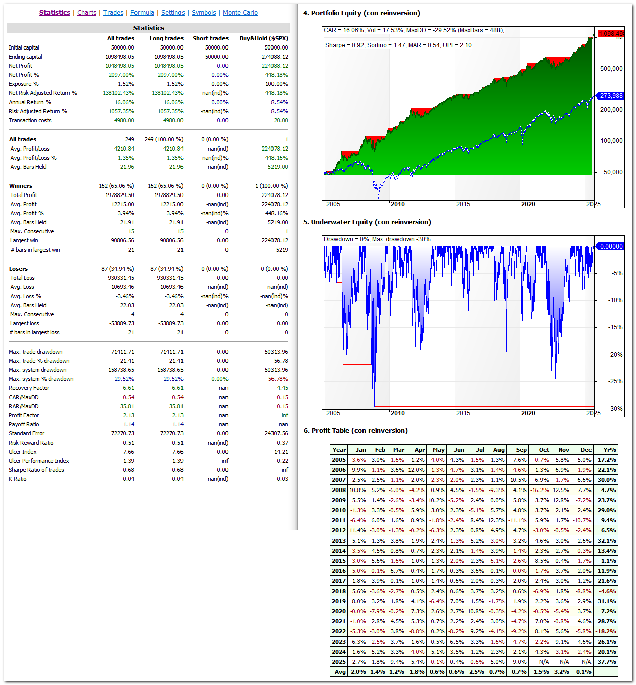 Se constata que la idea es simple, pero muy buena, ya que supera ampliamente al SP500 con la mitad de drawdown.