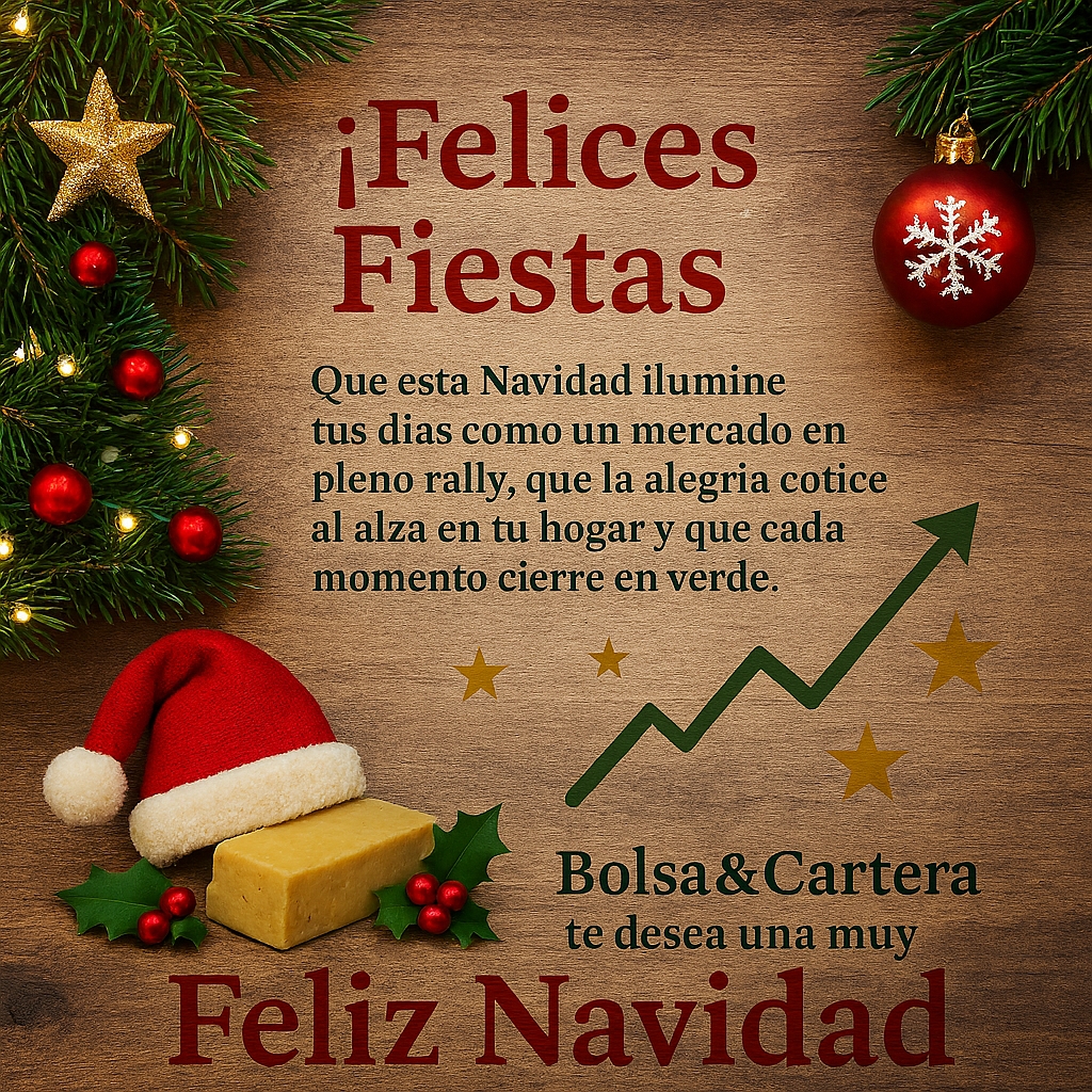 ¡Feliz Navidad! [A-] | [A+] Quiero desearos que paseis unos estupendos días en compañía de vuestros seres queridos. Disfrutad cada instante. Un abrazo Acerca debolsaycartera Ver todas las entradas debolsaycartera → Porbolsaycartera25 diciembre, 2025MOSTRAR COMENTARIO(1) Alertas de trading 24/12/25 Alertas de trading 26/12/25 PUBLICAR UN COMENTARIO Haz clic aquí para cancelar la respuesta. Sí, agrégame a tu lista de newsletter.Δ One Respuestas Oscar Lombera dice jueves, diciembre 25th 2025en14:53 Feliz Navidad y Feliz 2026!!! Reply ↓